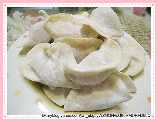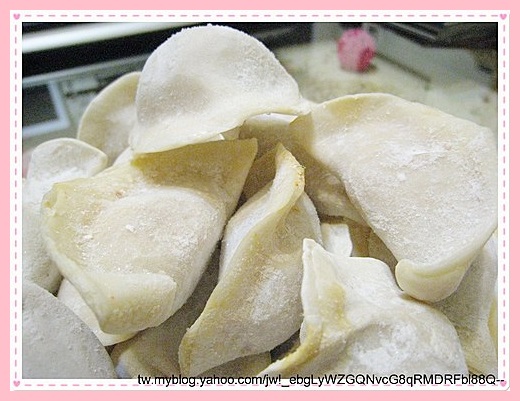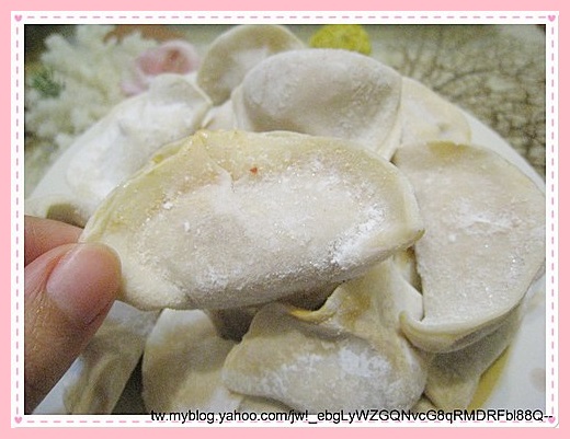 。泡菜水餃。已經開始變色了唷。發現了嗎?