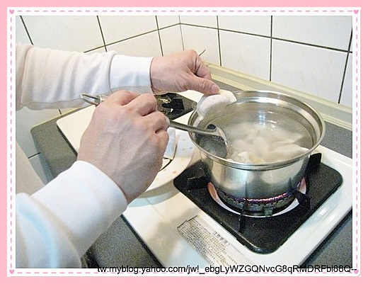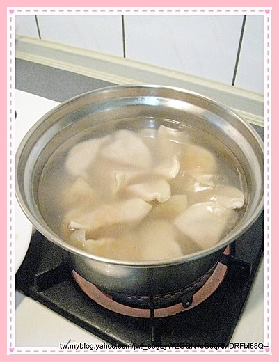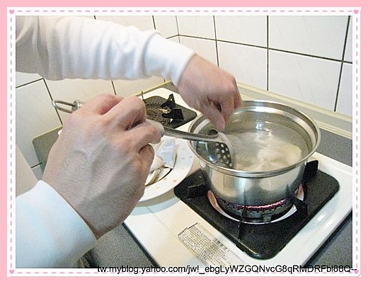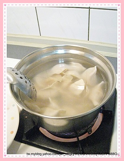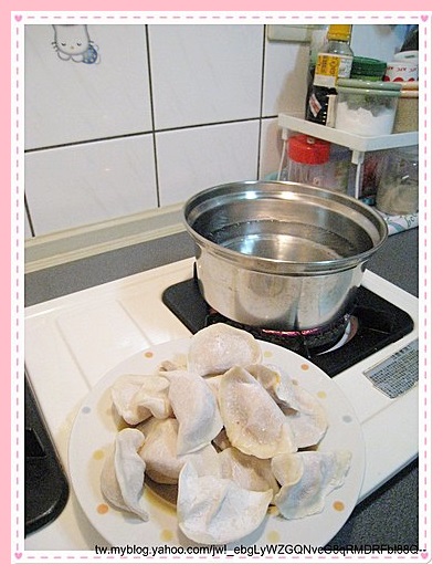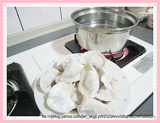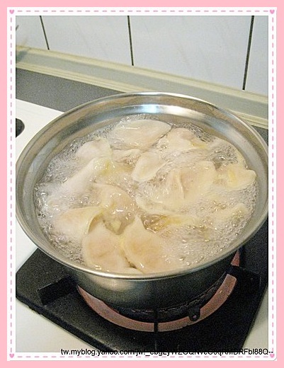 。等水開始跳舞時(水滾)。就可以放水餃囉